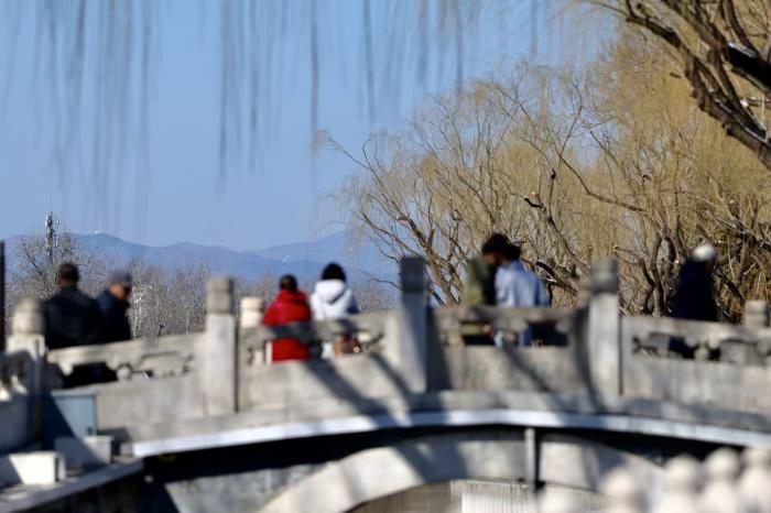 3月6日,北京雪后初晴,碧空如洗。在高空俯瞰,连绵西山覆着未消的残雪,与城市天际线相映成画。什刹海银锭桥头,市民凭栏远眺,将“银锭观山”的胜景定格在镜头里。