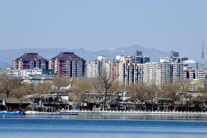 从什刹海远眺西山。