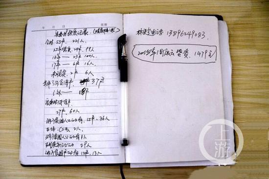 打开抽屉,10多个厚厚的工作日记本,记录着周康云的日常工作。泉秀村贫困户对象的基本情况,泉秀村基础设施建设情况,泉秀村产业发展情况一目了然。