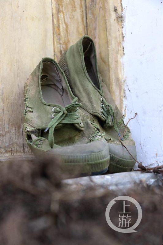 一间不过30平方米的低矮房,一张平板床。角落里摆放着锅盆碗罐,一双破旧的老式胶鞋晾晒在门外,还有一碗泡面,因为没有及时倒掉而生霉了。