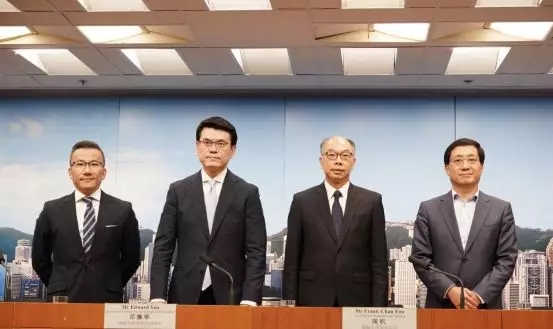 香港运输及房屋局局长陈帆、商务及经济发展局局长邱腾华、机管局行政总裁林天福等,14日下午就近日的机场示威活动举行跨部门记者会。