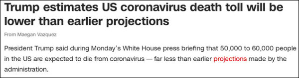 20日特朗普声称死亡人数会低于预期 CNN报道截图