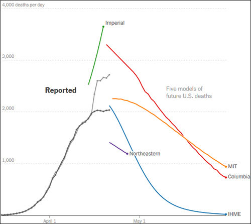 据《纽约时报》4月22日报道,根据最新的数据,多个大学及机构分别构建了5月美国疫情死亡病例的新模型。