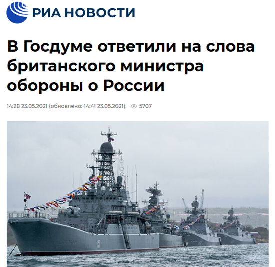 海外网5月24日电 俄新社23日报道称,英国国防大臣本·华莱士近日宣称俄罗斯舰船在英国附近海域的活动增加,俄罗斯是“敌人、头号威胁”。俄罗斯国家杜马议员鲁斯兰·巴里别克驳斥了该说法,并称英国此类声明毫无依据,完全是英国政客们的“幻想”。