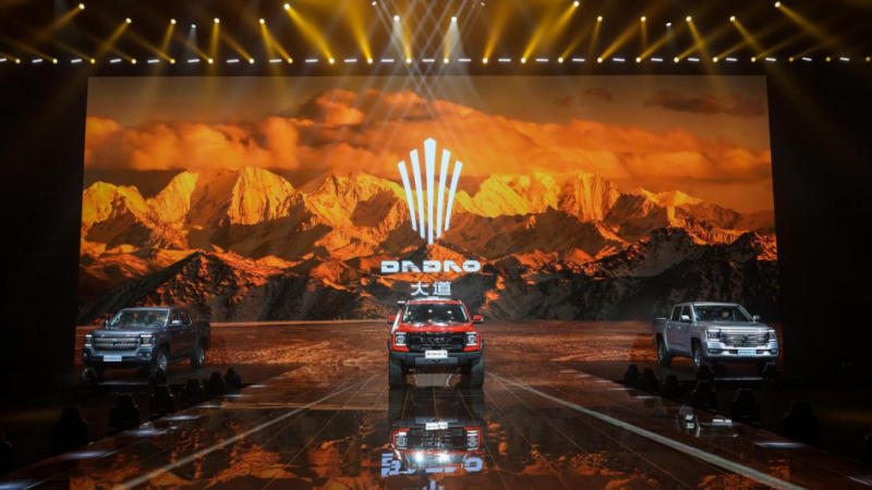 作为巡天架构推出的首个产品系列,大道皮卡以用户为中心,树立高端皮卡新标杆。本次发布会,共亮相大道乘用版、大道商乘版和大道越野版三个版本车型。以硬派美学为设计理念,带给用户沉稳又不失动感的视觉感受。大道皮卡的横贯式前格栅硬朗霸气,展现纯粹硬派格调;格栅上方的LED灯带配合动感十足的光影流线车身设计,拥有同级领先仅为0.38的风阻系数,以及优雅带感的琴弦式尾灯和倒车投影,更独特、更安全。