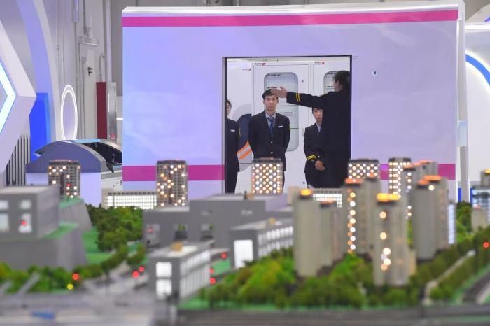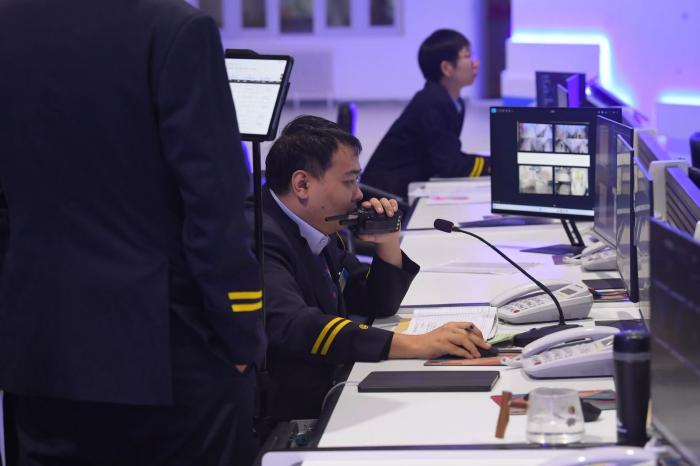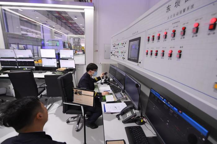 工作人员进行车辆调度考核。该实训基地也是地铁公司建设的首个全自动驾驶培训基地,设置大小场景800余个,实现全自动运营模式全场景教培。