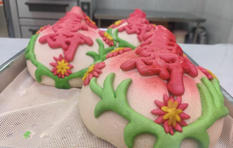 共富工坊古色古香的档口前,摆满热气腾腾的青海传统面点,最抢眼的莫过于非遗传承人马兰秀的代表作“福禄寿桃”。粉面团做桃身,黄面团捏花蒂,蒸好的寿桃栩栩如生,咬开时麦香中带着淡淡的奶香。“这手艺是我奶奶传我妈,我妈再传我的,原先就想着守着小铺子过日子,没想到老手艺还能带动大伙致富。”传承人坦言。如今,她和徒弟们制作完成的一组组寿桃,满足了老辈人的情感和舌尖记忆,也成了集加工、展示、销售、直播于一体的“梦工厂”,犹如一道非遗创新共富的靓丽风景。