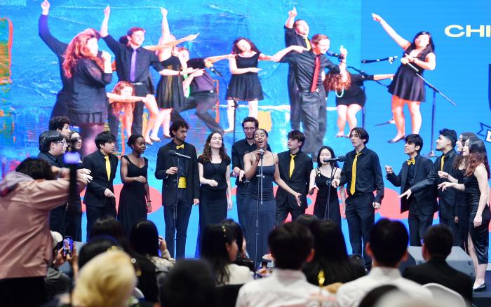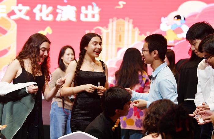 中外高校学生在演出中互动。