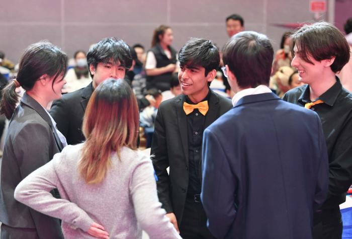 中外高校学生在一起交流。