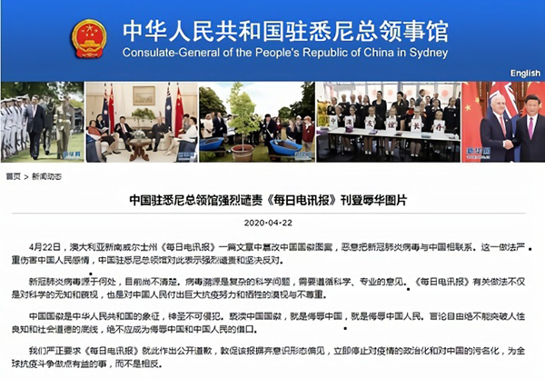 澳媒刊登辱华图片,中国总领事馆严正要求公开道歉