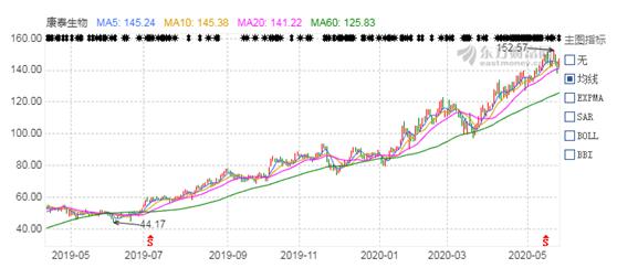 在该公告未发布以前,康泰生物的估计在100元/股左右徘徊多天,而在发布公告后,短短三个多月的时间,其股价已经逼近150元/股。