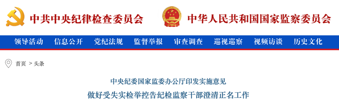 近日,中央纪委国家监委办公厅印发《中央纪委国家监委关于为受到失实检举控告纪检监察干部予以澄清正名的实施意见》(以下简称《实施意见》)。