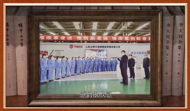 场景:习近平在太钢不锈钢精密带钢有限公司生产车间,了解企业复工复产和运行情况,鼓励企业在科技创新上再接再厉、勇攀高峰,在支撑先进制造业发展方面迈出新的更大步伐。