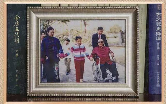 自2013年习近平第一次发表新年贺词以来,这张照片就一直出现在他的书架上。习近平推着年事已高的父亲,和妻子、女儿一起散步。