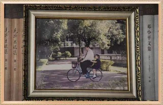 自2013年习近平第一次发表新年贺词以来,这张照片就一直出现在他的书架上。这是他在福州工作时带女儿骑自行车的温馨时刻。
