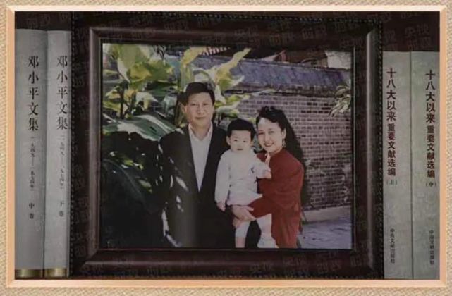 这张习近平一家三口的合影今年第一次出现在他的书架上。