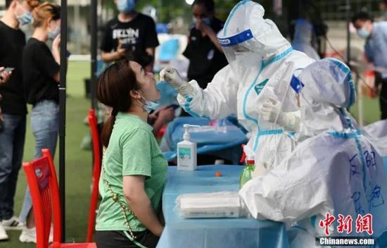 5月30日,广州市海珠区,医护人员在鹭江球场为市民做核酸检测 图/中新网