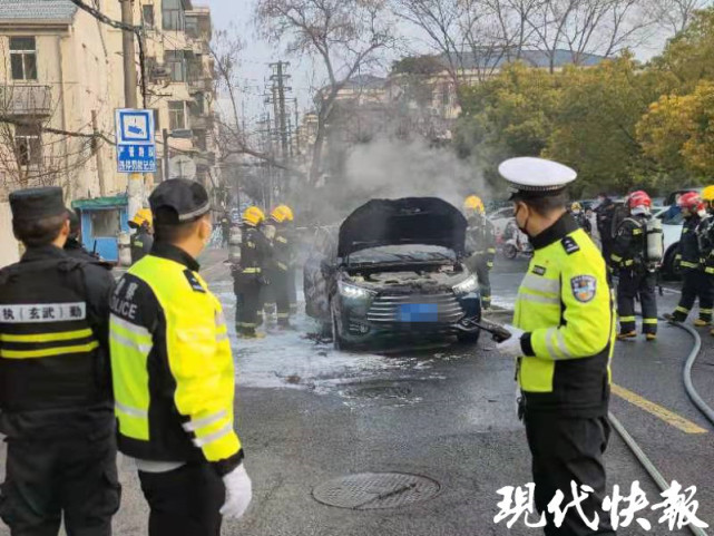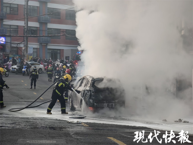 学校附近一车辆自燃 南京民警消防联手紧急处置
