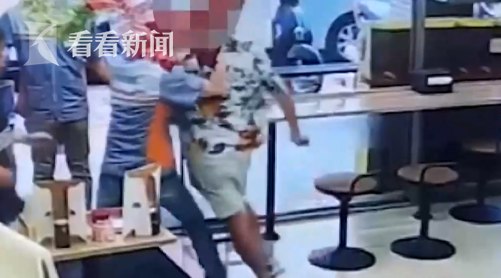 店员起先拉住曾某阻止他的行为,没想到曾某情绪失控,拼命挣脱,随手抡起店内的椅子想要砸店员,幸好一旁的男子及时出手,夺过椅子。