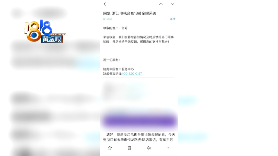 记者通过邮件,把两位路虎车主的问题发给了厂家,发稿前同样没有收到回复。记者把相关问题反映给了属地金华金东区赤松市场监管所。