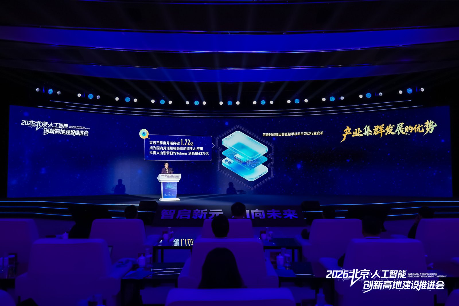 最后是产业集群发展的优势。2025年,全市人工智能核心产业规模预计达4500亿元,企业集聚超2500家,这两项均占全国半数左右。人工智能领域上市企业近60家、独角兽约40家,国内市值最高的人工智能独角兽,单笔融资额最大具身智能企业、科学智能企业,首个上市国产人工智能芯片企业和大模型企业,都诞生在北京。豆包三季度月活突破1.72亿,成为国内月活规模最高的原生AI应用。