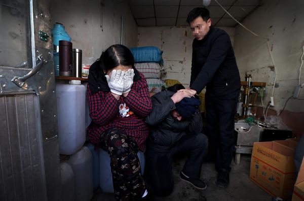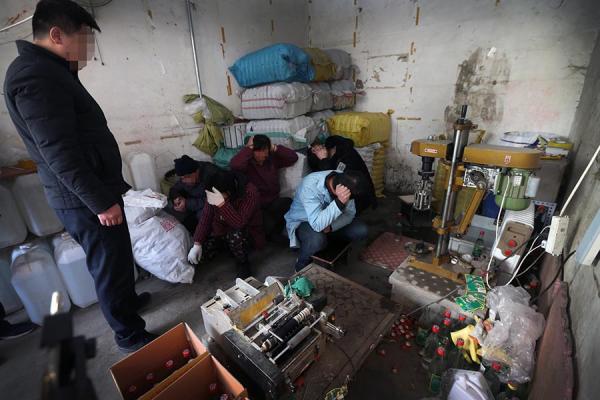 收网当天,民警破门同时进入窝点内的几间平房,将正在灌装白酒的嫌疑人抓获。