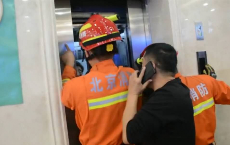 五名成人一名儿童被困电梯 北京东城消防破门救人
