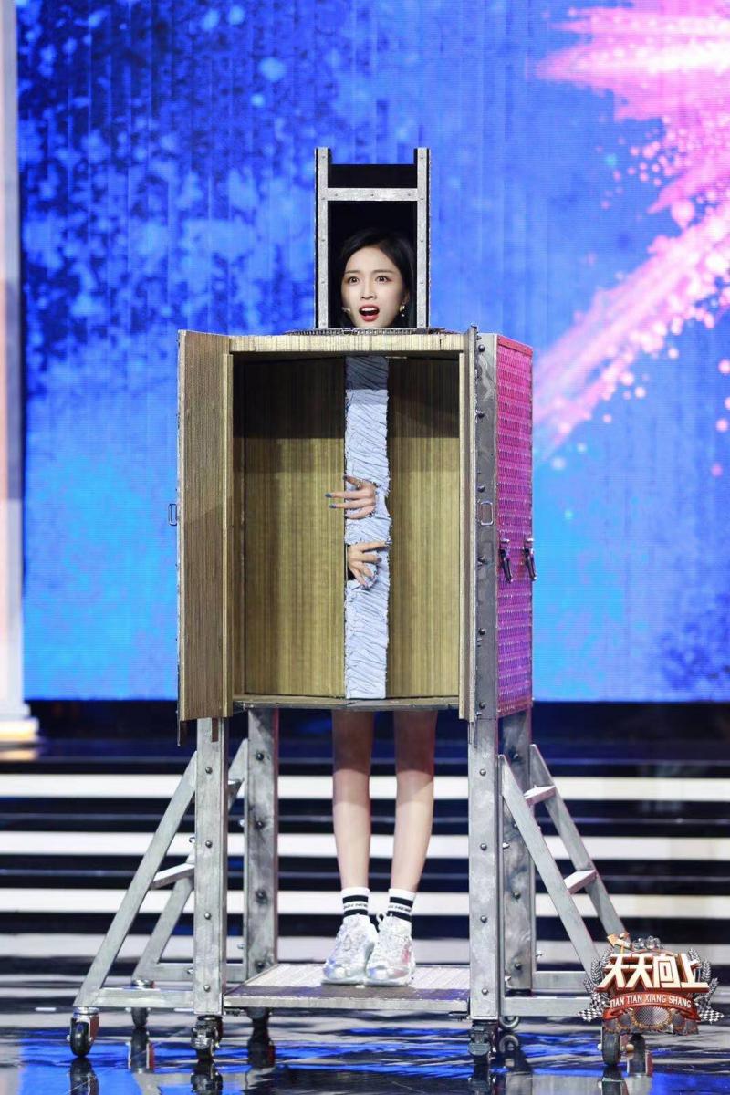 魔术环节,大张伟、沙宝亮和吴宣仪三人则选择了魔术师丁建中、蒋俊教学的难度最大、视觉冲击力最大的“意念魔术”进行学习、表演。吴宣仪躺在桌子上,被大张伟用神奇的“魔法”悬浮在空中,已经让人很震撼了,没想到丁建中随后直接让吴宣仪站在一个双层竖立的箱子中,经过一番魔法,让吴宣仪的“头身分离”,虽然身子还是朝着观众,但头却已经跟随首层箱子自由转动了!超强视觉冲击力让在场所有人都啧啧称奇。