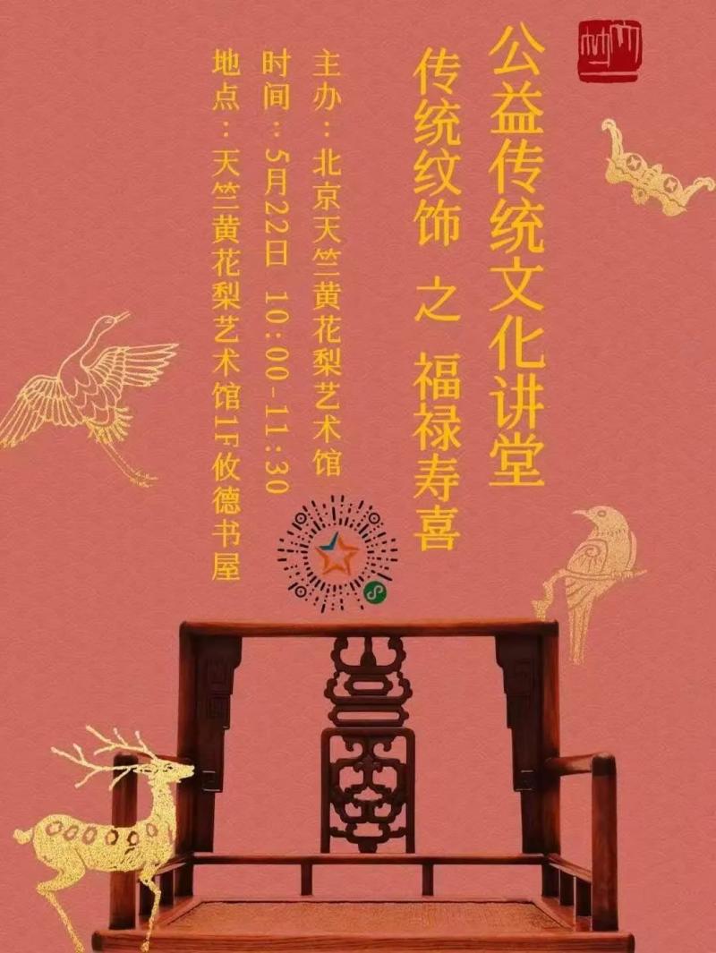 天竺黄花梨艺术馆《公益传统文化讲堂》将于5月22日(本周六),带来传统纹饰系类课程之福禄寿喜,欢迎大家一起分享中国传统文化,感受古人对美好生活的追求。