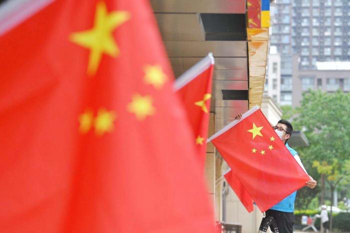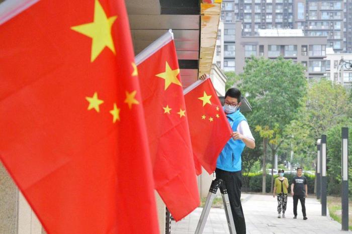 一面面国旗扮靓了大街小巷,使“中国红”成为一道靓丽的风景。