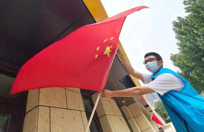 为了国旗悬挂期间的整洁,自愿者也将定期巡逻,按时维护。在庆祝建党百年的日子里,让居民感受更多的节日气氛。