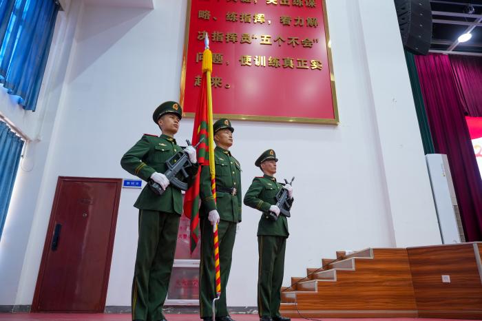 授衔仪式在雄壮的国歌中拉开序幕,3名护旗手护送武警部队旗入场,新战友们整齐列队、昂扬挺立,满怀期待地迎接军旅“成人礼”。