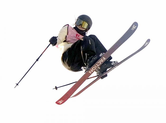 中国选手刘梦婷在自由式滑雪大跳台世界杯北京站女子组决赛中。
