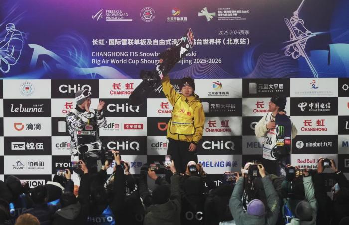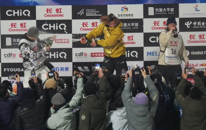 赛场瞬间|苏翊鸣夺得单板滑雪大跳台世界杯北京站冠军