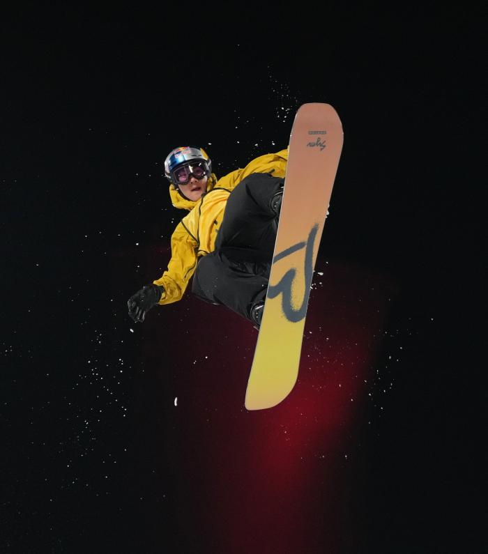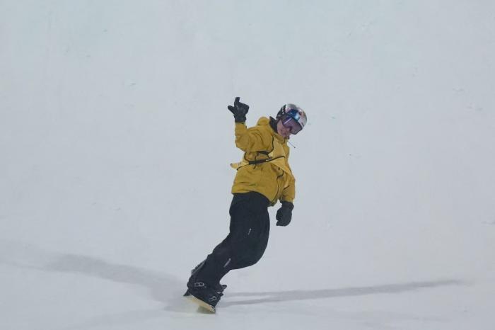 苏翊鸣穿上单板领滑黄衫。
