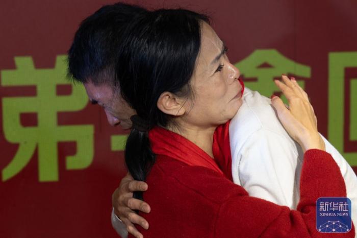 1993年,11岁的李林与7岁的弟弟李鑫相依为命。一次外出,弟弟走散,从此失联。2026年3月,在南昌铁路警方帮助下,通过人脸识别与DNA比对,弟弟在广东汕头被找到。3月24日,弟弟回到湖北仙桃老家,李林铺红毯、挂气球,以隆重仪式迎接弟弟回家。仪式现场,姐弟相拥在一起,泪水夺眶而出。
