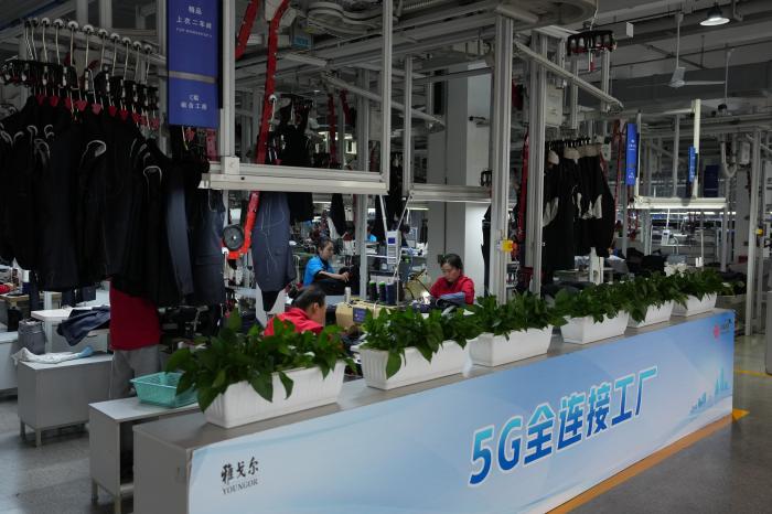 3月27日拍摄的雅戈尔服装制造有限公司5G西服智能工厂。
