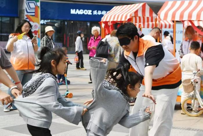 小朋友在活动现场进行互动体验。