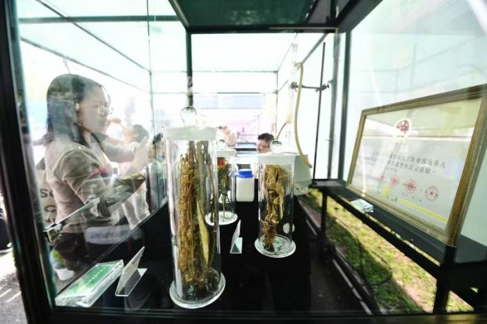 现场32个展位一字排开,北京大学医学部带来屠呦呦获诺奖特展——原始手稿、实验器具实物,从《肘后备急方》到青蒿素的科研之路近在眼前。