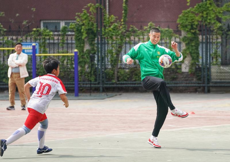 “希望通过我的分享让更多小同学喜欢足球并积极投身这项运动。”侯森表示,自己与校园足球渊源深厚,曾在人大附中三高足球俱乐部接受专业训练,之后又从校园走向职业赛场。侯森结合自身追梦历程,分享了坚守热爱、刻苦训练的成长故事,勉励同学们坚持运动、锤炼意志、团结协作,在绿茵场上享受快乐、在拼搏中收获成长。