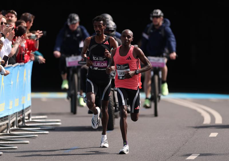 本届伦敦马拉松吸引5.9万名选手参赛,全球报名人数超百万,平坦的赛道与适宜的天气为精英选手创造了绝佳条件。比赛伊始,萨维与埃塞俄比亚选手克杰勒查等六人组成第一集团领跑,前半程始终保持4分40秒以内的极限配速。35公里处,萨维与克杰勒查展开终极对决。这位31岁的肯尼亚选手凭借更强的后程耐力逐渐拉开差距,最终以11秒优势夺冠。克杰勒查以1小时59分41秒刷新首马历史最佳成绩。身后的乌干达选手基普里莫以2小时00分28秒的成绩完赛,同样超越原世界纪录。三人上演了马拉松史上三破纪录的罕见盛况。同一天、同一条赛道,埃塞俄比亚名将阿塞法以2小时15分40秒的成绩卫冕冠军,把自己在去年创造的纯女子马拉松世界纪录又提高了10秒。