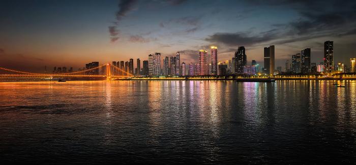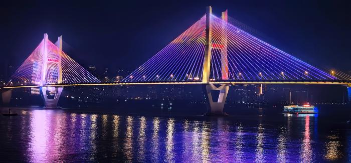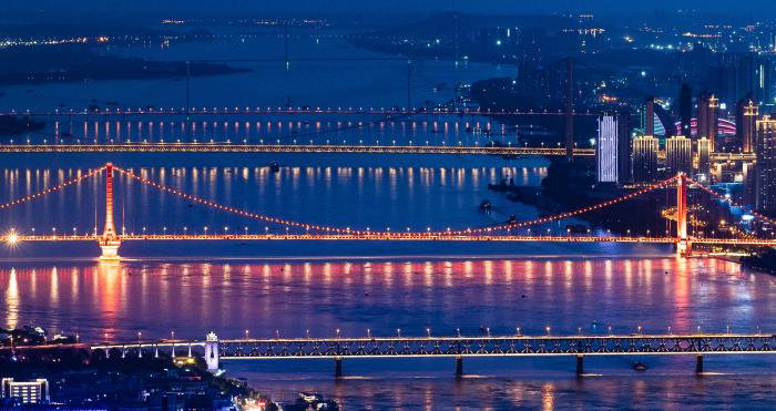 2025年12月19日拍摄的武汉长江二桥夜景。新华社记者 沈虹冰 摄