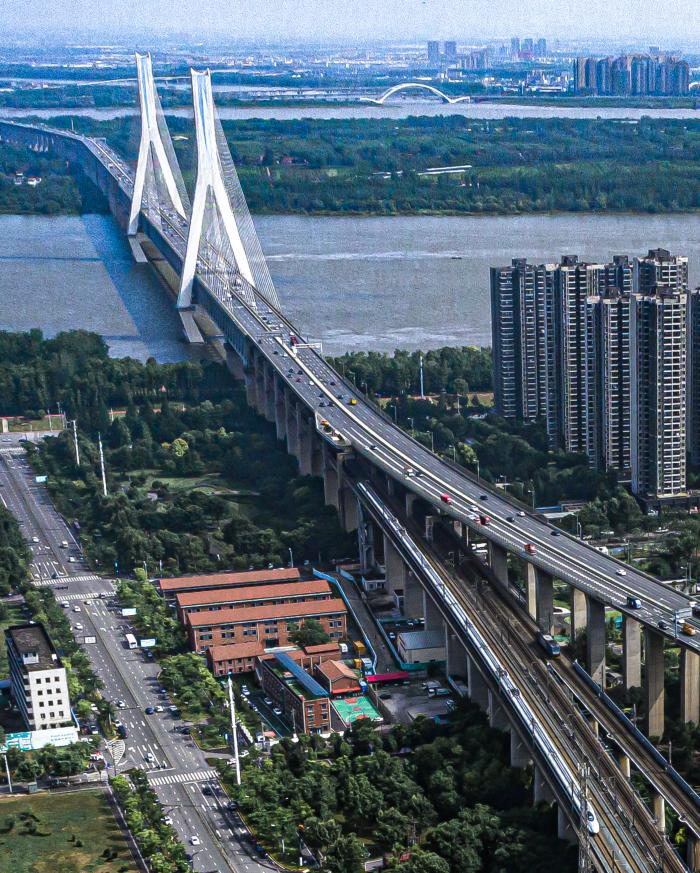 2025年12月25日拍摄的鹦鹉洲长江大桥(无人机照片)。新华社记者 肖艺九 摄
