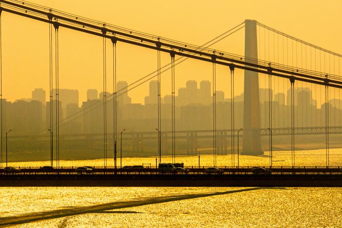 2025年12月27日拍摄的鹦鹉洲长江大桥。新华社记者 沈虹冰 摄