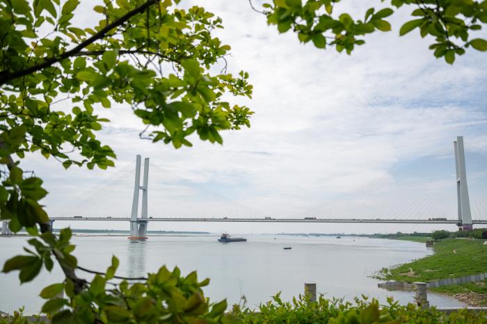 4月22日在湖北省荆州市拍摄的荆州长江大桥。新华社记者 杜子璇 摄
