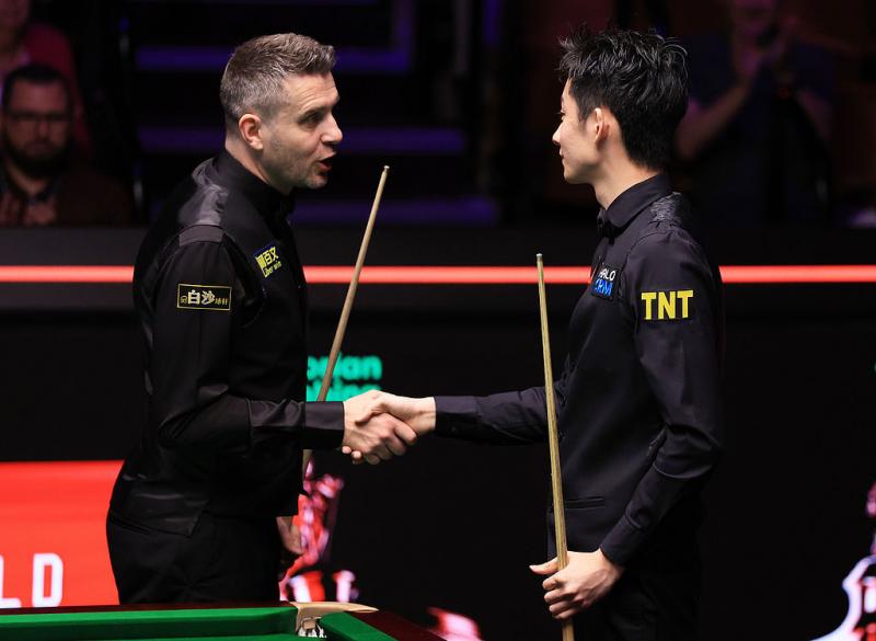 第21局有些戏剧性,塞尔比在处理一颗难度不大的底库球时再次出现低级失误,他对自己没能打进目标球非常不满意,罕见地将球杆狠狠地撴向地面,直播画面中传来很大的声音,这是他情绪有些崩溃的表现。吴宜泽趁势赢下此局,12比9拿到三个赛点。接下来塞尔比很快稳定住了心态,顽强地将比分追至11比12,胜负悬念再起。第24局,两人又是互相送礼,都太渴望胜利,失误频频屡出差错,可以看出都非常紧张。最终还是吴宜泽抓住机会,在第三个赛点局兑现了胜利,将塞尔比挡在了八强之外。