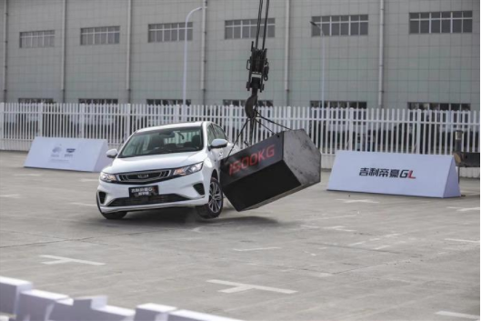 为了唤起大家对汽车安全问题的重视,近日吉利继魔鬼碰撞之后,再一次推出魔鬼碰撞2.0公开测试——1.5吨摆锤侧击试验,模拟滚石撞击、侧滑撞击水泥墩子等极端恶劣事故。巨大的摆锤从超4m高的位置摆下撞击,现场放置的一辆帝豪GL被撞旋转了90度。