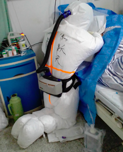 作为重症医学专业的副主任医师,余跃天自告奋勇地提出由他来完成这次胸腔引流操作。平时在工作中,余跃天经常操作胸腔引流术这一在重症医学领域的常规操作。但是,当他穿上密不透风的防护服,戴上厚厚的口罩、护目镜和好几层医用手套后,平时很熟练的操作流程则增加了不小的难度。在加上患者体型较为肥胖,且病床高度较低,又为这次操作增添了更多难度。