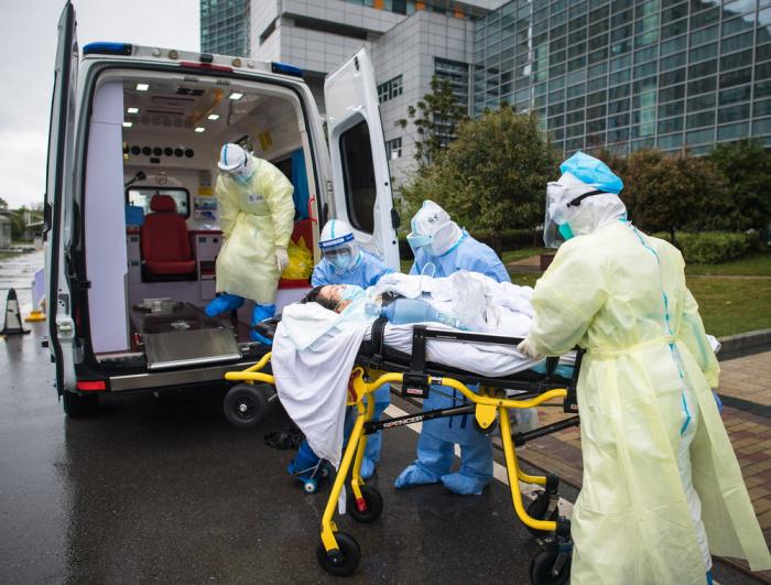 3月29日,医务人员将新冠肺炎患者转运至华中科技大学同济医院中法新城院区。随着疫情防控形势持续向好,按照国家卫健委的整体部署,华中科技大学同济医院光谷院区所有的在院患者都将集中到该院中法新城院区,由来自北京的6支国家医疗队和同济医院集中收治。患者的转运工作3月26日正式启动,为期一周。