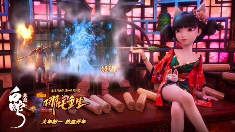 《新神榜:哪吒重生》将于2021年大年初一上映,联动视频中,《白蛇:缘起》人气角色宝青坊主上线营业,以另类方式友情担任《新神榜:哪吒重生》宣传大使。她以为遭遇C位危机,于是吐槽技能全开,颜值逆天的“新哪吒”李云祥和三太子遭到毒舌点评,“一个像吴亦凡,一个更像吴亦凡”,甚至就连追光动画的厂牌标志都被吐槽“真土”,而在发现《新神榜:哪吒重生》预告片里没有女角色后,宝青坊主安心坐稳“追光最红女明星”的位置,现场热舞气场全开魅力四射,并对观众喊话“想看什么,记得发弹幕哦”。